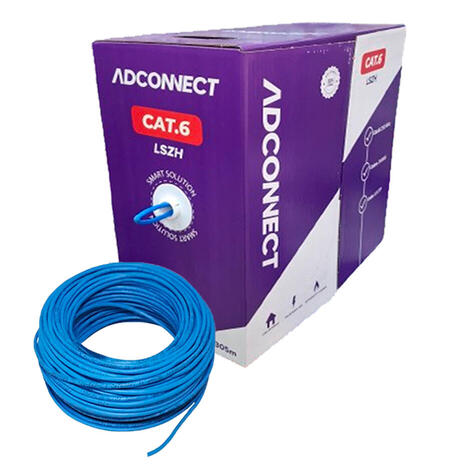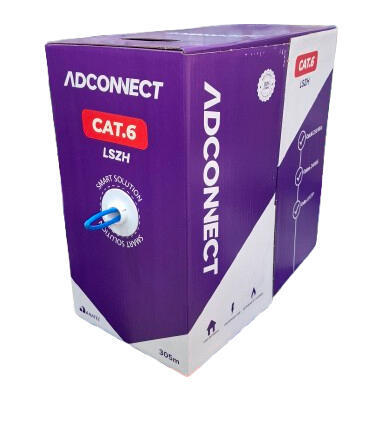 Cabo U/UTP Cat.6 100% cobre (24 AWG), com capa LSZH (baixa emissão de fumaça e gases tóxicos). Oferece desempenho superior para redes de alta velocidade, atendendo normas TIA/EIA-568-B.2. Caixa com 305m